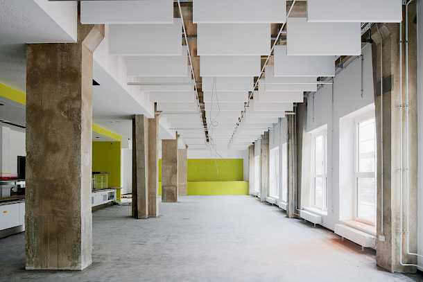 Da der Komplex im Wesentlichen privat finanziert wird, stehen Nachhaltigkeit und Wirtschaftlichkeit der Baumaßnahmen stark im Vordergrund. Die Bestandsgebäude, von gründerzeitlicher Industriearchitektur bis zu vorgefertigter Gewerbearchitektur der siebziger Jahre werden saniert und umgenutzt.