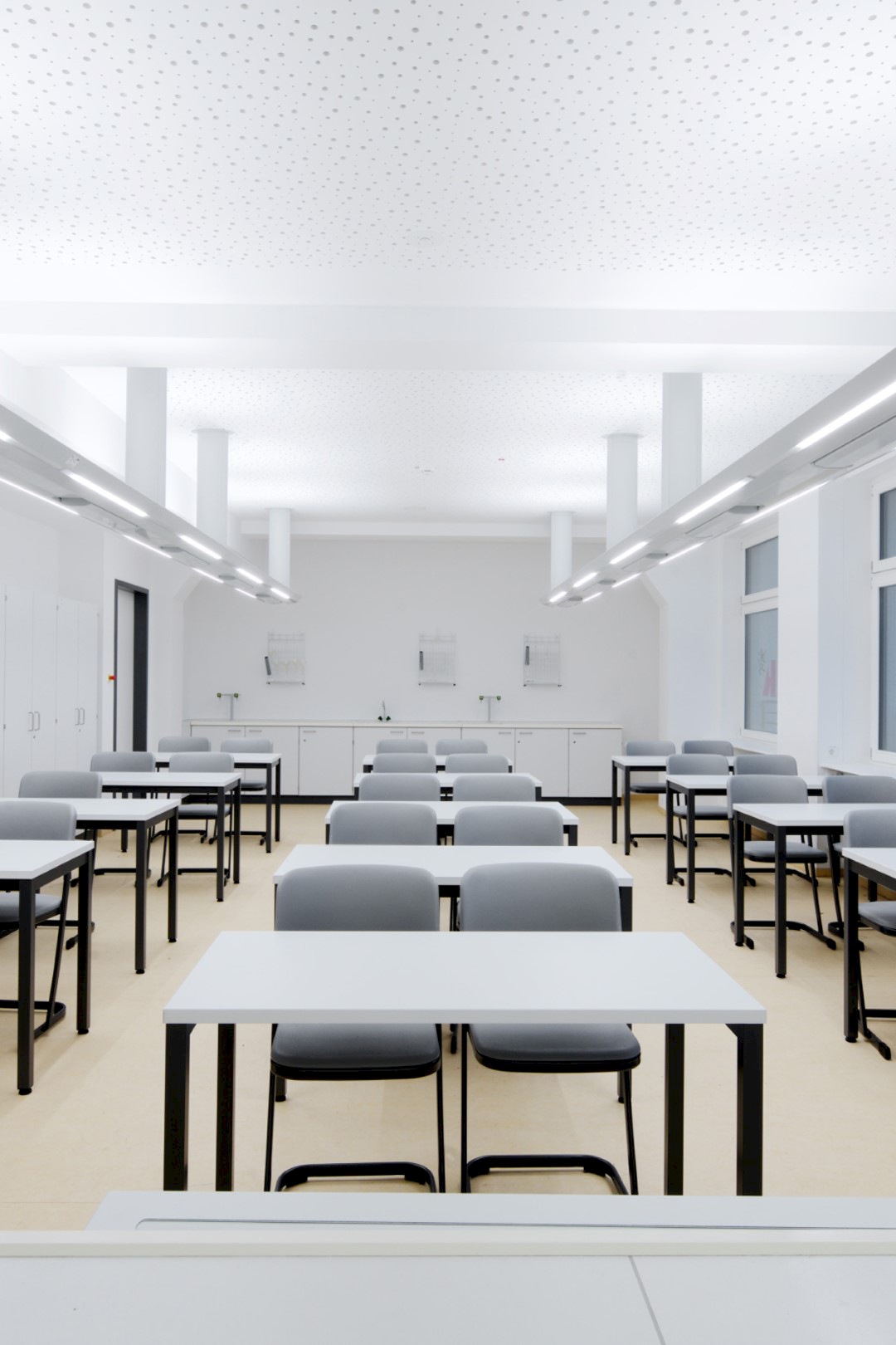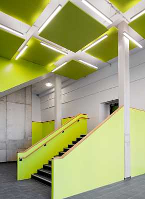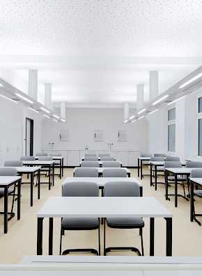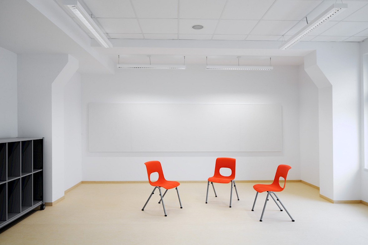 Die Anlage wächst schrittweise über einen Planungszeitraum von 15 Jahren. Durch die Mehrfachnutzung innerhalb der verschiedenen Schultypen kann ein breites Spektrum großzügiger Sonderräume angeboten und gleichzeitig präzise auf die gewachsenen Anforderungen des Schulbetriebes reagiert werden.
