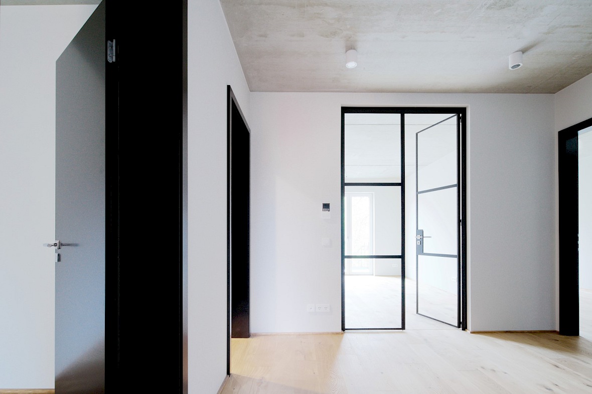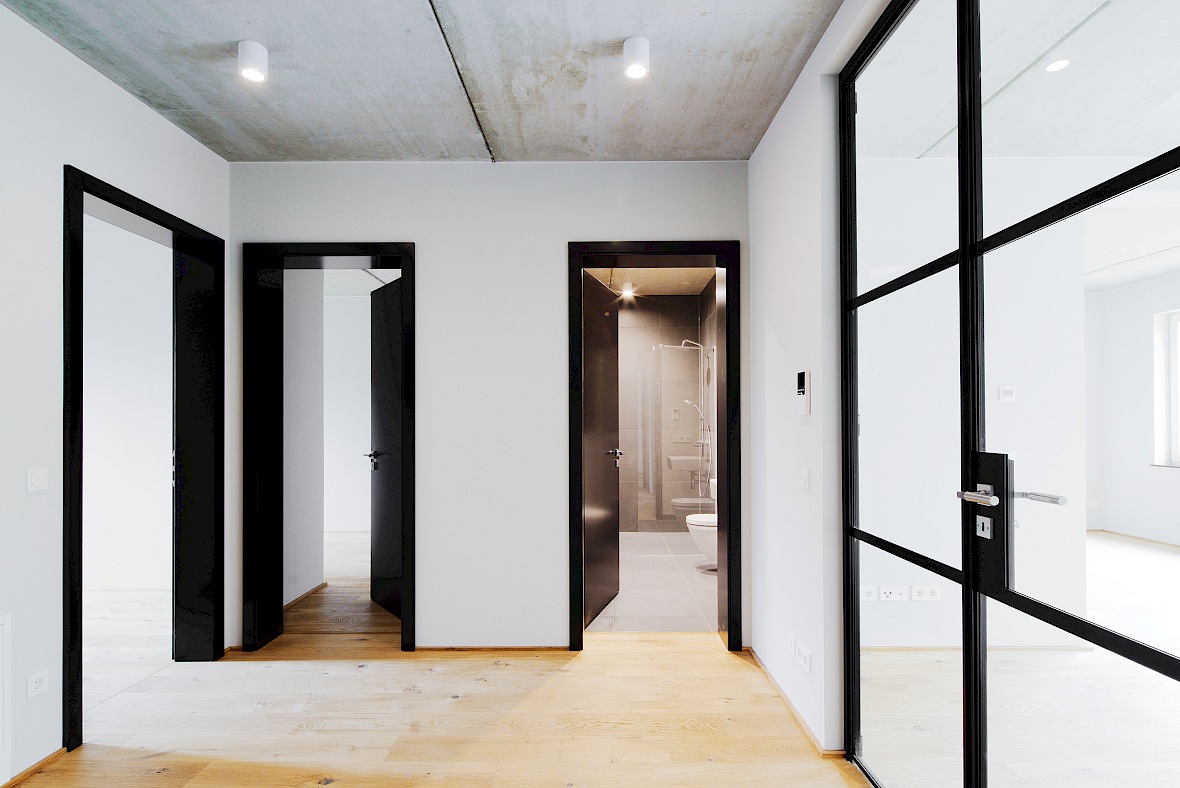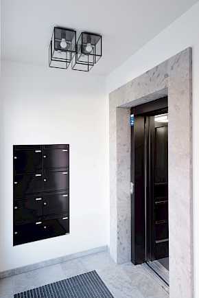 Auf drei Etagen sind vier Wohnungen sowie zwei Penthouses entstanden, die aufgrund ihrer besonderen Ausstattung attraktiven Wohnraum darstellen. Die Ausgestaltung erfolgte mit marktüblichen Materialien und Produkten, die aber in geschmackvoller Kombination edel und außergewöhnlich wirken. Zu jeder Wohneinheit gehört ein von der Straße abgewandter Balkon.