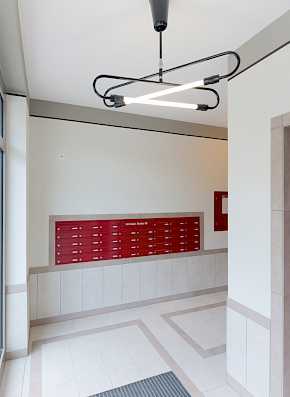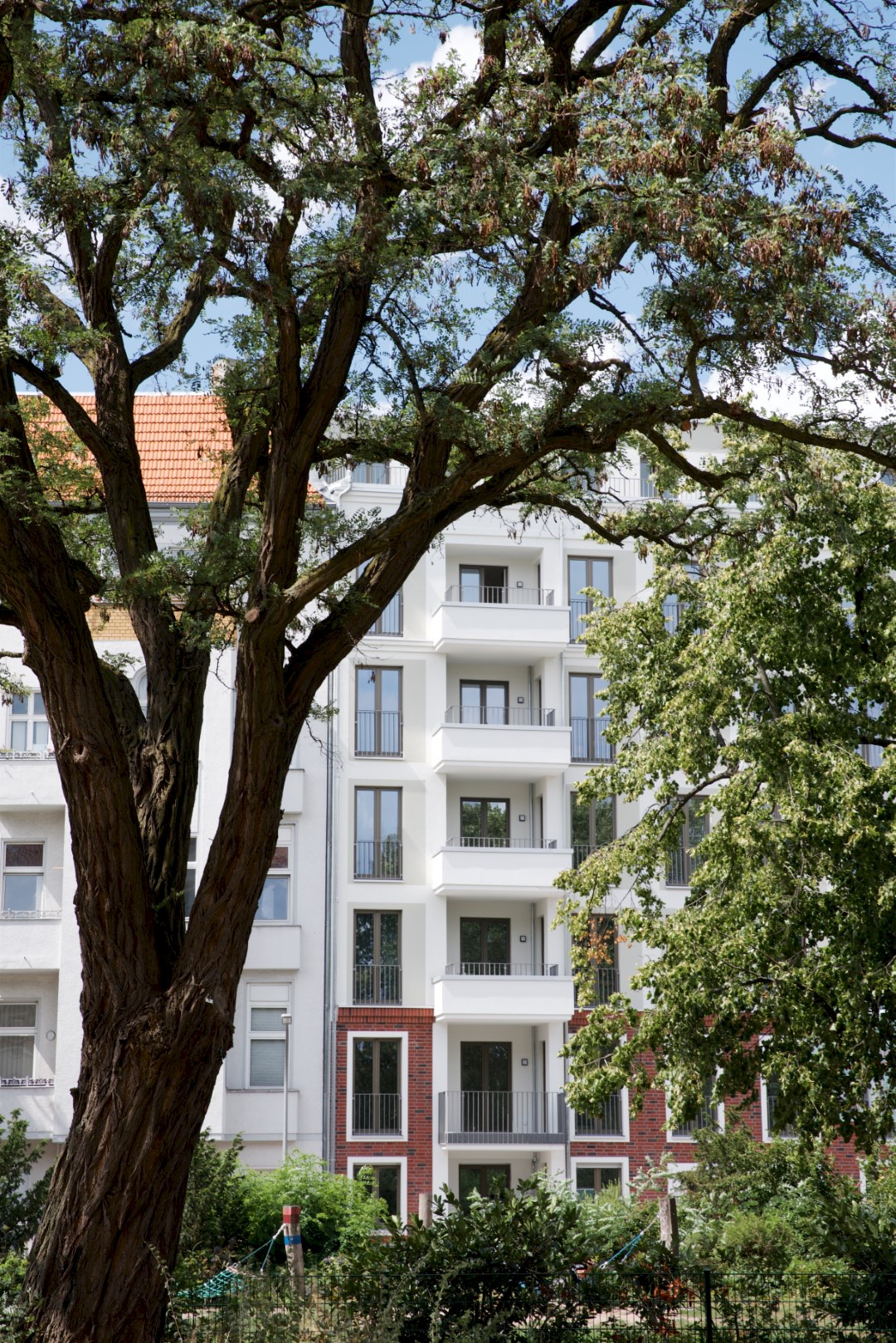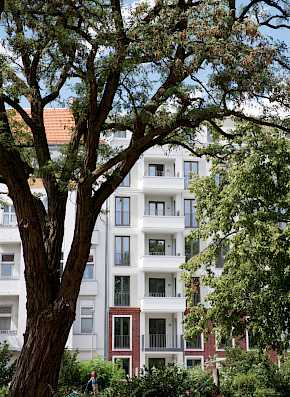 Auf dem Grundstück ist die Errichtung von zwei mehrgeschossigen Wohngebäuden (Vorderhaus und Hinterhaus) mit 43 Wohneinheiten auf einer gemeinsamen Tiefgarage mit 13 Pkw-Stellplätzen, dem Hauptteil der Fahrradstellplätze, allen Abstell- und Technikräumen, geplant.
