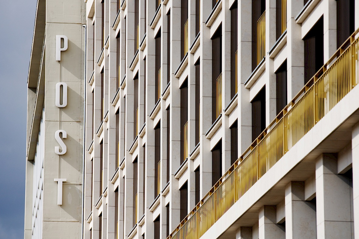 Der siebengeschossige Baukörper soll neben der Hotelnutzung eine Tiefgarage und im Erdgeschoss den Zugang zum benachbarten Lebensmittelmarkt und weitere Ladeneinheiten beherbergen. Die Lobby des Hotels befindet sich im Erdgeschoss des Kopfbaus der ehemaligen Hauptpost. Im Dachaufbau wird die Hotelbar und der Frühstücksbereich untergebracht sein.