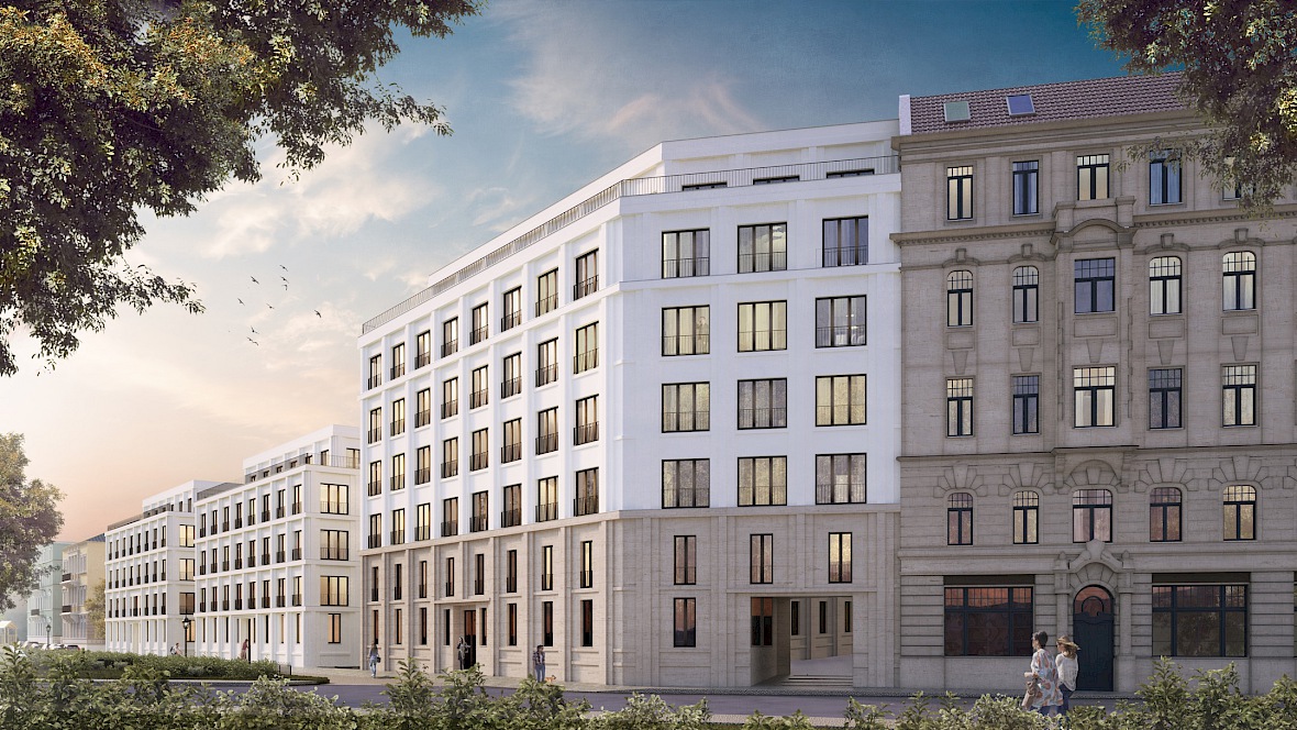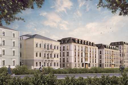 Neubau zweier Villen und eines Eckhauses als Abschluss der „Königshöfe“ in Dresden in der Theresienstraße 6