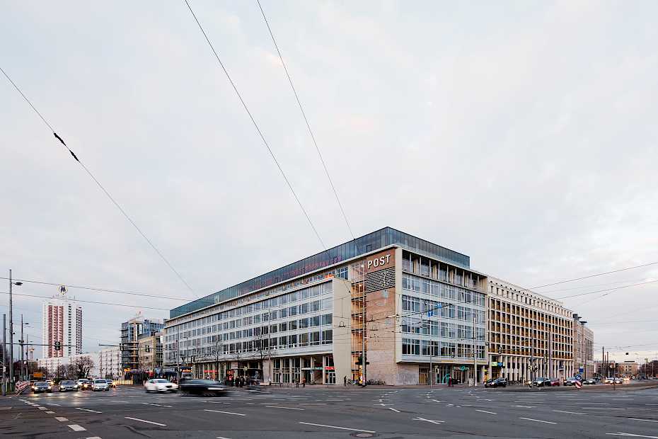 Umnutzung, Sanierung der Hauptpost am Augustusplatz mit ergänzenden Neubauten zu einem multifunktionalen Innovations-, Wohn- und Gewerbestandort im Stadtinneren.