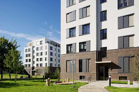 Neubau von drei freistehenden Wohngebäuden mit je 16 Wohneinheiten in der Zschampertaue 54-60 in Leipzig Grünau - nur 5 min fußläufig vom Kulkwitzer See entfernt.